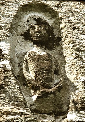This figure, carved in false relief on a window-top of the old church