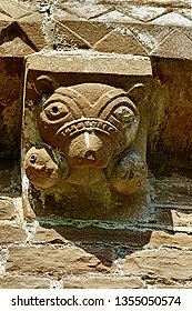 The famous figure on corbel-table of the beautiful Romanesque church, which