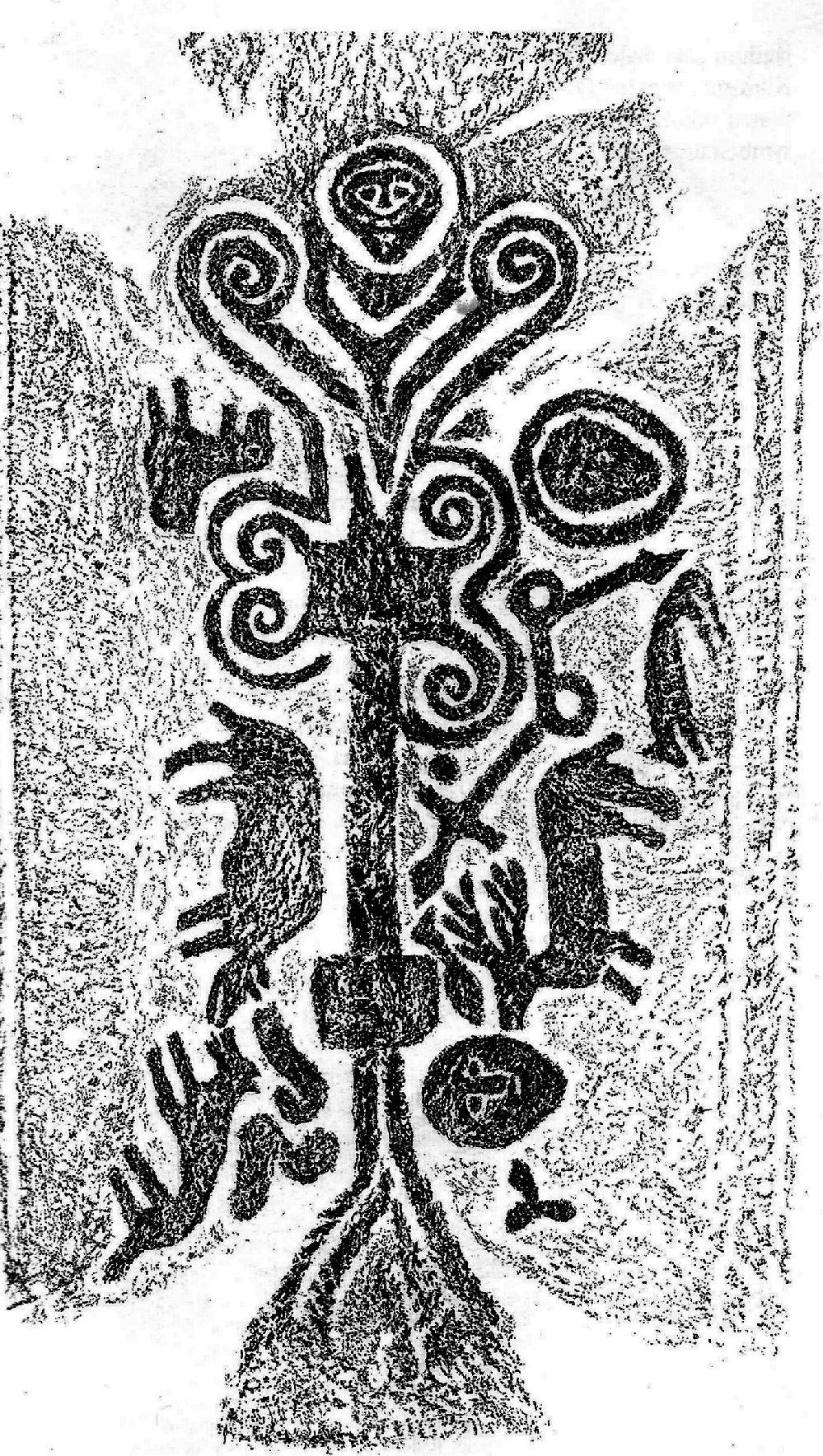 A grave-slab at Klim shows the world-tree with Christ/Odin's head at the